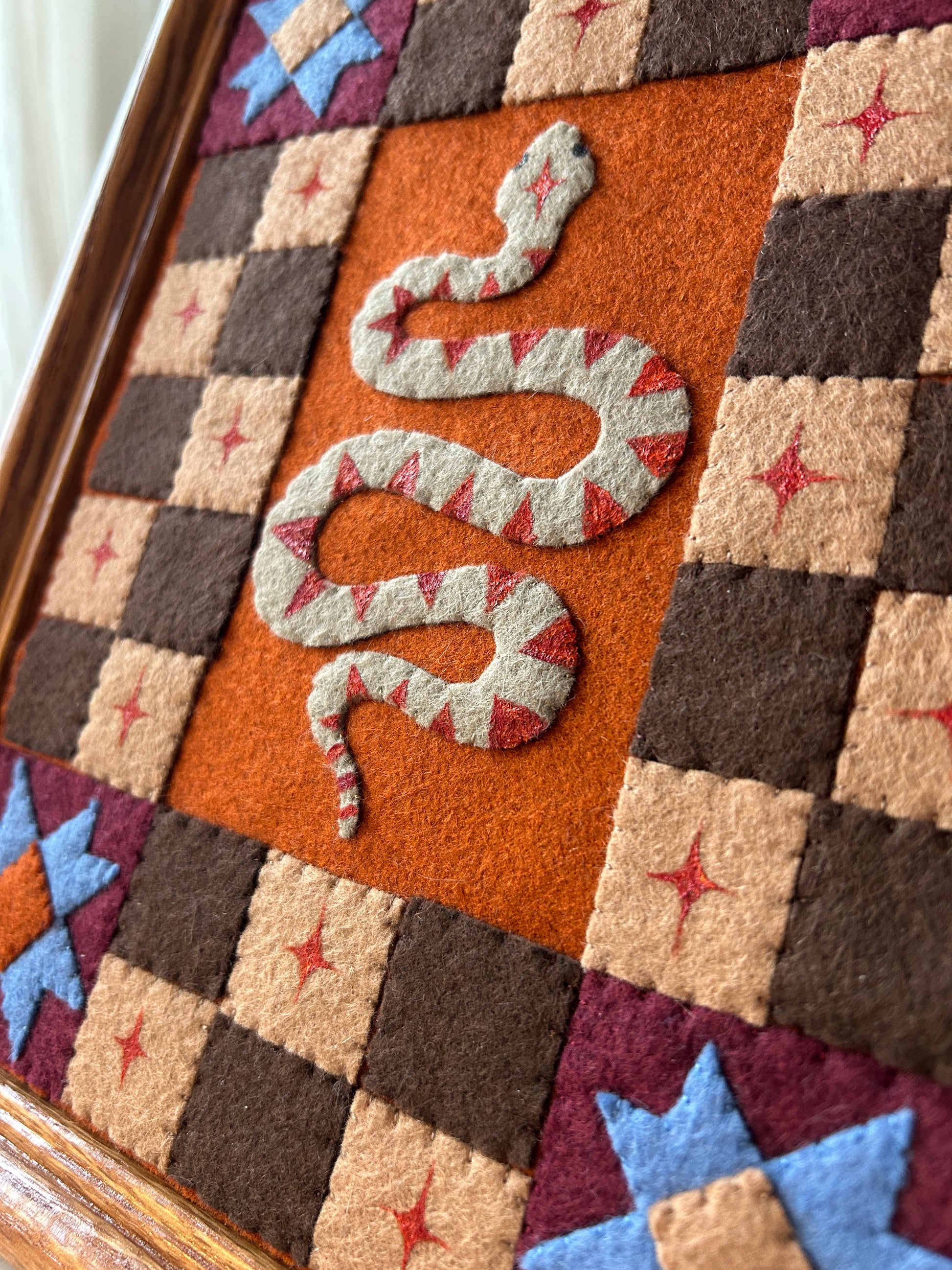 Snake and Checkers- Framed Felt Folk Art Snake